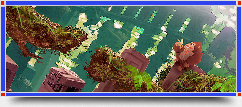 Artist Sammy Hall posted in his blog some early concepts for DKC Returns. He posted this concepts in order to show off some what didn't make it into the final game—like Donkey Kong in Super Mario Bros. 2 filtered through a Virtual Boy lens—and the famous water level.